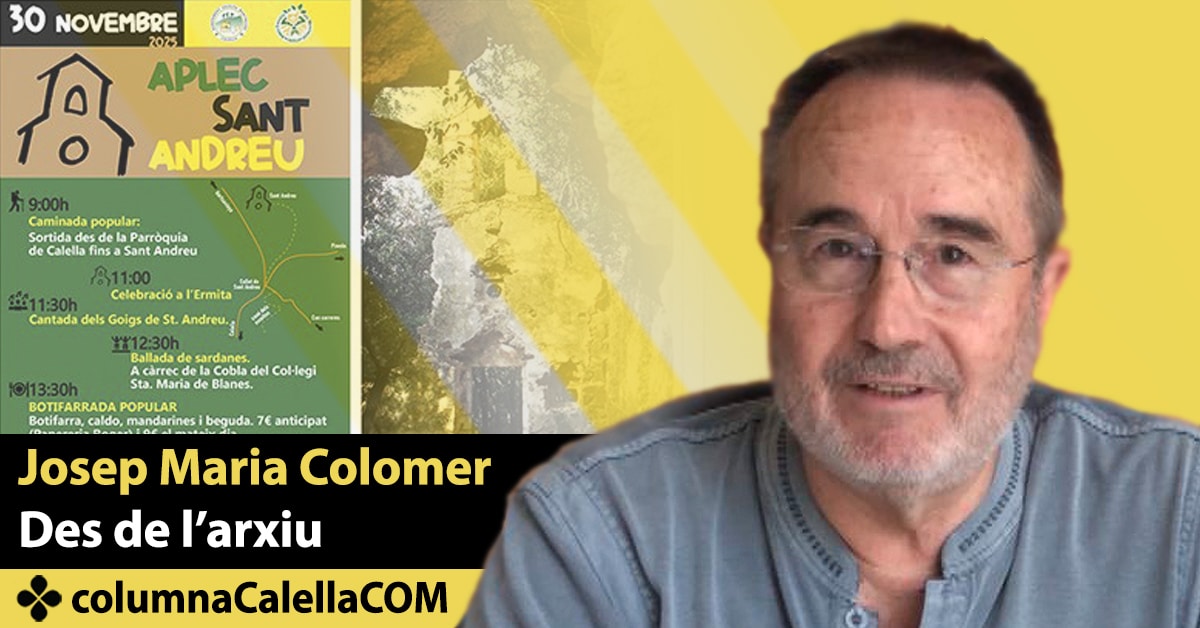 “Sant Andreu, pluja o neu, o fred molt greu”... Aquesta és la dita d’aquesta diada... El Sant celebra la seva festa el dia 30 d’aquest mes... Diuen que aquest Sant, Patró d’Escòcia, fou un deixeble de Joan el Baptista i [...]