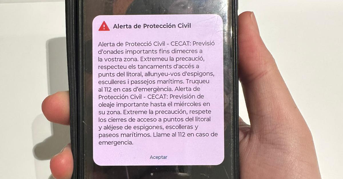 Protecció Civil envia un ES-alert al Maresme pel fort temporal marítim que provoca la borrasca Harry