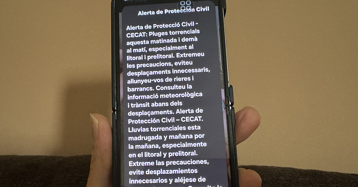 El missatge enviat als telèfons mòbils demana “extremar les precaucions, evitar desplaçaments innecessaris i allunyar-se de rieres i barrancs”. Com ja va passar amb el temporal del mes de juliol, però, no tots els telèfons mòbils l’han rebut.