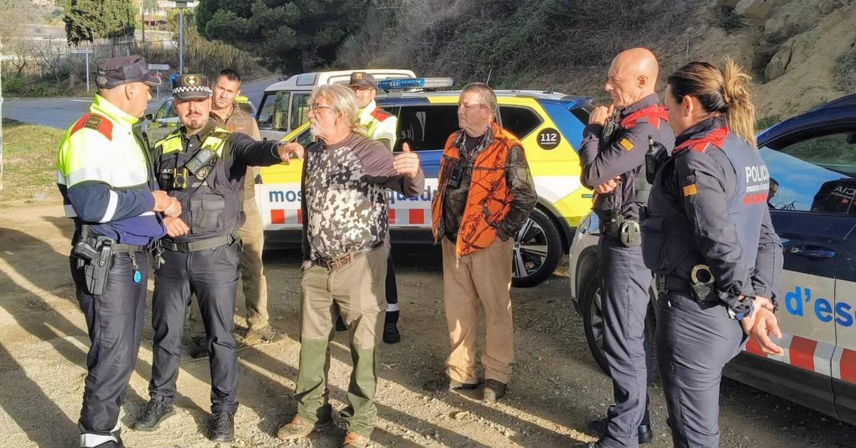 Dispositiu de caçadors i cossos policials per la primera batuda. (Foto: @calellapolicia)