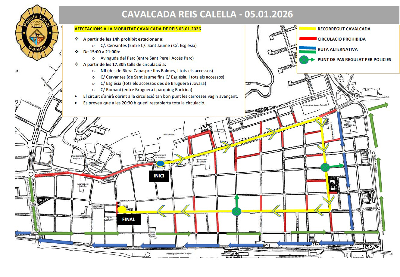 Afectacions de trànsit per la Cavalcada. (Foto: Aj. Calella)