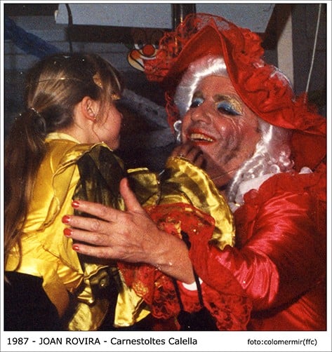Ara que s’acosten les festes del Carnaval, he donat un cop d’ull al meu arxiu i he recuperat la fotografia (any 1987) d’un dels “pekinaires” més populars, que gaudia molt d’aquestes diades de rauxa i divertiment a nivell popular i de barri… Recordo en Joan Rovira a dalt de la carrossa, fent de muller o concubina, d’un Carnestoltes dandi, lluent i ben plantat (Juanola) vestit de blanc i amb un llacet vermell al coll… En Joan, en el seu paper, (diguem-ne femení), li donava la rèplica artística i teatral… Exagerat, histriònic i “xabacà” però molt afectuós i respectat entre el jovent i la mainada…
