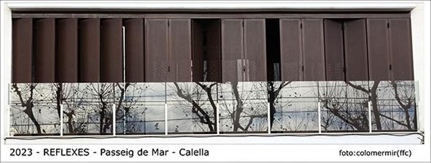 Anant a estirar les cames pel Passeig de Mar, vaig observar, fent una repassada als edificis del carrer Anselm Clavé, que la moda actual de protegir balcons i finestres ja no són les clàssiques reixes amb barrots de ferro, ara són peces de vidre que, depenent de la il·luminació del dia, es converteixen en miralls… Tinc unes quantes imatges “emmirallades” d’aquestes noves idees de la construcció de les quals he escollit aquesta que és una mena de panoràmica dels arbres del passeig…