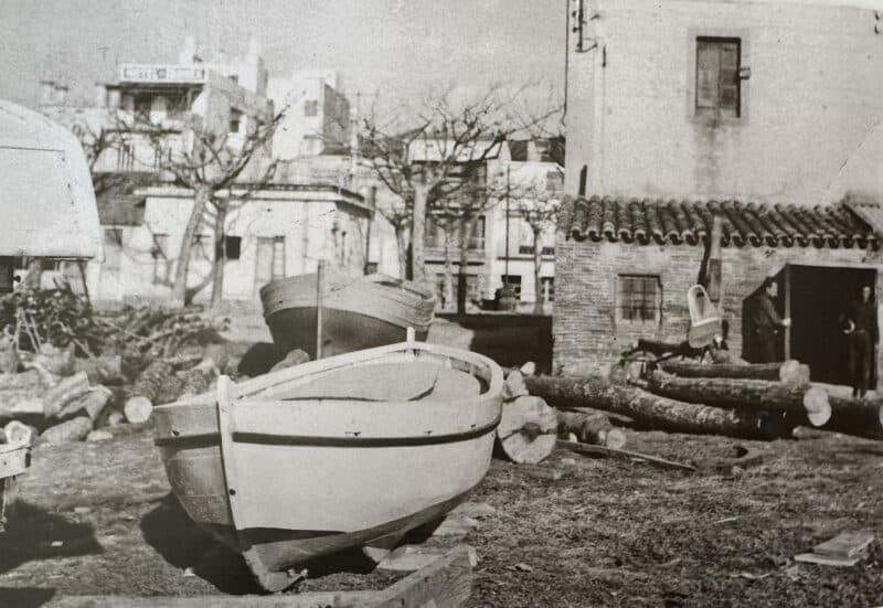 Encara l’any 1963, les fotografies mostren aquest espai amb troncs, barques en construcció i un cobert annex a la casa de pescadors, testimoni d’una activitat que resistia el pas del temps.