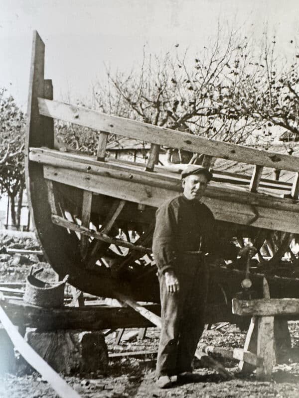 Construcció d’una barca, posant les quadernes. (Foto: Arxiu Municipal)
