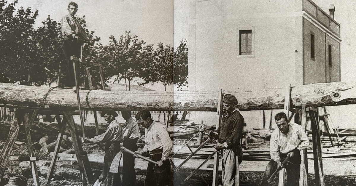 Construcció d’una barca, posant les quadernes. (Foto: Arxiu Municipal)